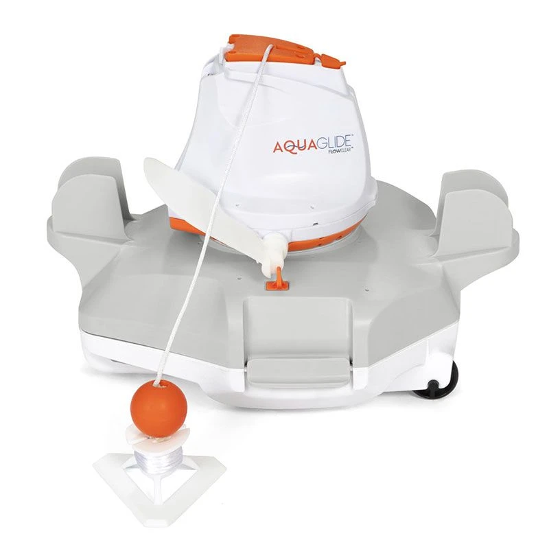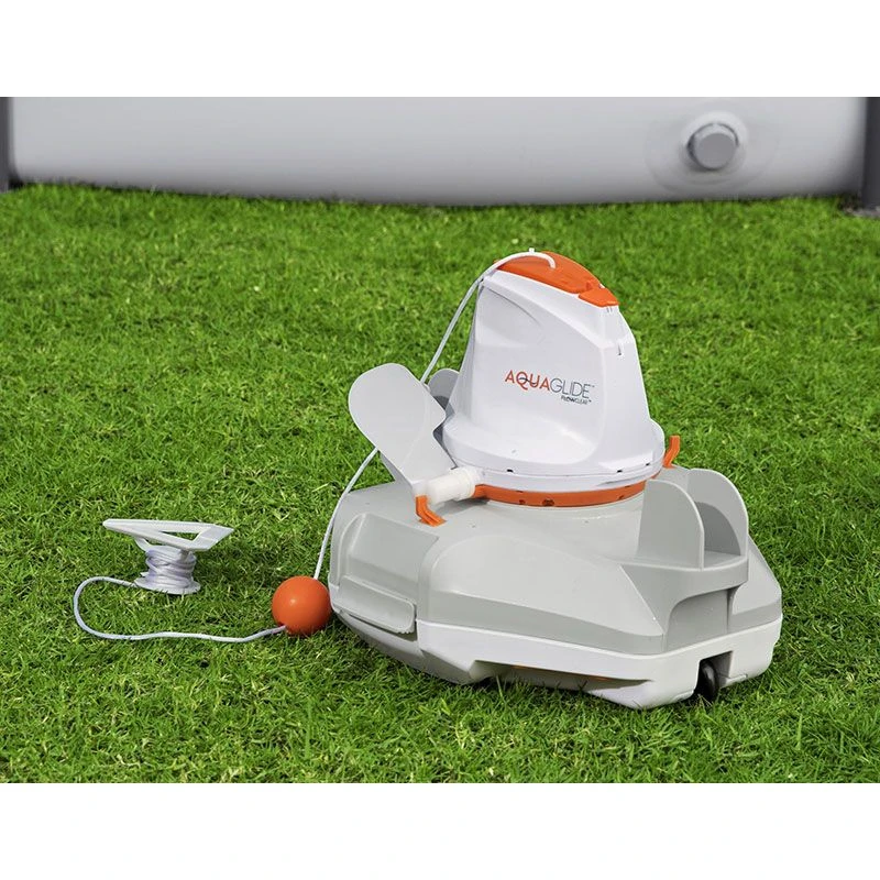 Le robot Aquaglide Bestway ne pèse que 4,7kg, c’est en quelque sorte un poids plume du secteur ce qui lui permet d’être mobile et très facile à manipuler par un adulte quel que soit son âge. Une fois plongé dans l’eau il se met automatiquement en route et aspire l’eau est les débris par le dessous. Les débris vont entrer dans le compartiment inférieur du robot et rester bloqués dans le filtre dont il dispose. L’eau va quand à elle traverser le filtre et ressortir par la buse à propulsion située au niveau de la tête pivotante ce qui va propulser l’Aquaglide dans la direction opposée.